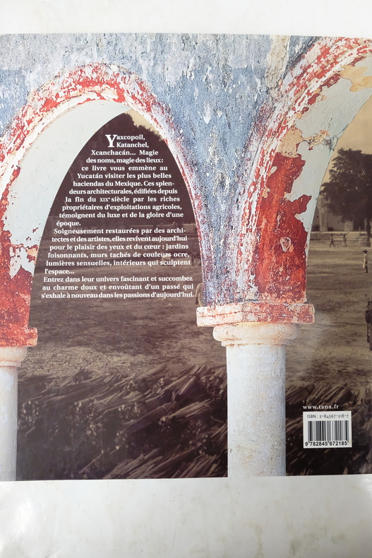 S.l., éd. Tana, 2004, in-4, cartonnage couv. photo coul. éd., jaquette à l'identique, 216 pp., papier glacé, très nb. photos, dessins et cartes en coul. et en noir, Sommaire, Glossaire, Bibliographie, Une visite dans les plus belles demeures du Yucatan au Mexique. Un charme doux et envoûtant. Pas courant Très bon état