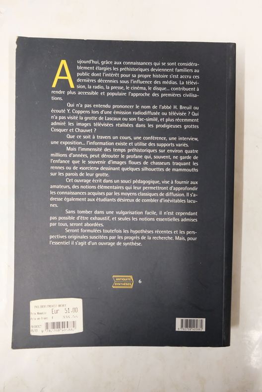 ... L'immensité des temps préhistoriques sur environ quatre millions d'années, peut dérouter le profane qui, souvent, ne garde de l'enfance que le souvenir d'images floues de chasseurs traquant les rennes ou de "sorciers" dessinant quelques silhouettes de mammouths sur les parois de leur grotte. Cet ouvrage écrit dans un souci pédagogique, vise à fournir aux amateurs, des notions élémentaires qui leur permettront d'approfondir leurs connaissances. Il s'adresse également aux étudiants désireux de combler d'inévitables lacunes. Sans tomber dans une vulgarisation facile, il n'est cependant pas possible d'être exhaustif, et seules les notions essentielles admises par tous, seront abordées. Seront formulées toutefois les hypothèses récentes et les perspectives originales suscitées par les progrès de la recherche. Mais, pour l'essentiel il s'agit d'un ouvrage de synthèse.