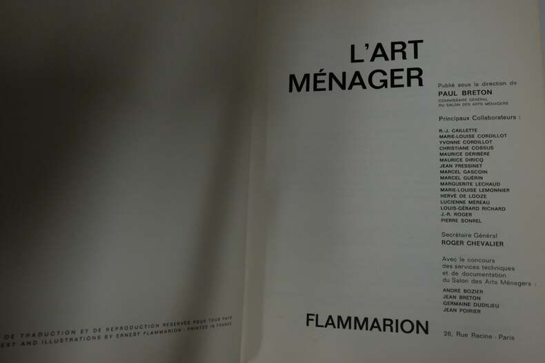 Manifeste de l'art ménager.S'abriter. Se loger. S'éclairer. Se chauffer. Se laver. Préparer les aliments. Consommer les repas. Nottoyer l'habitation. Entretenir le linge. S'habiller. Elever les enfants. Se protéger. Diriger la maison... Classification Dewey : 640-Economie domestique. Vie à la maison