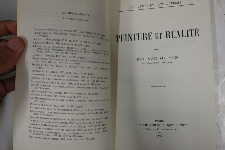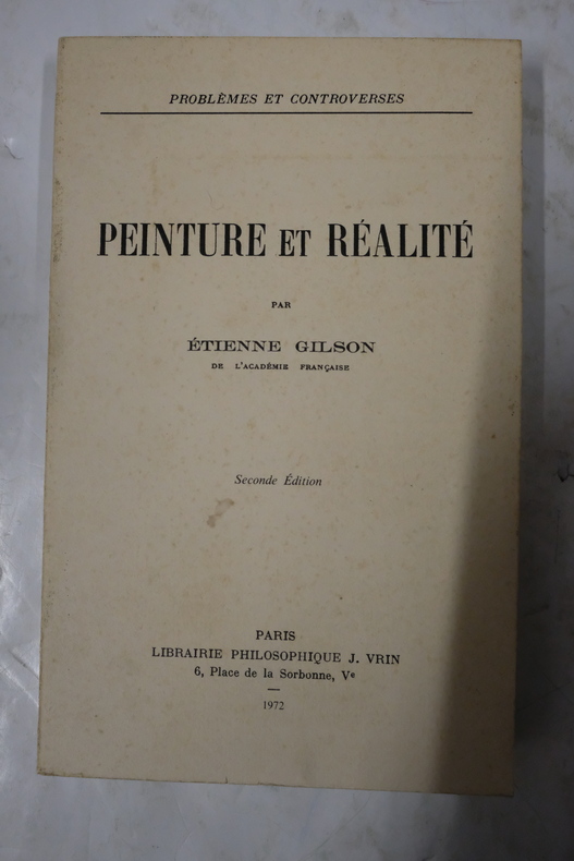 Librairie Philosophique J. Vrin "Problèmes et controverses" 1972, in-8 broché, 369 p. (quelques soulignés au crayon à papier, sinon très bon exemplaire ; non réédité) Bibliographie. Un titre très riche dans l'œuvre de Gilson, abordant notamment les questions du néant et de la création, ainsi que de la spécificité des arts plastiques.