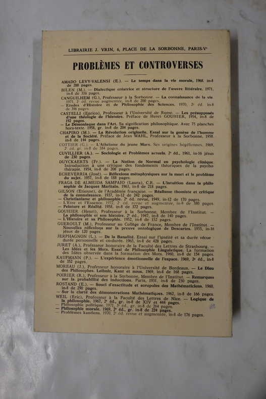 Vrin, Problèmes et controverses, 1958, 368 p., broché, couverture défraîchie avec traces de scotch, coiffes fendillées et recollées, tampons page 1,3 et 45, état assez correct.