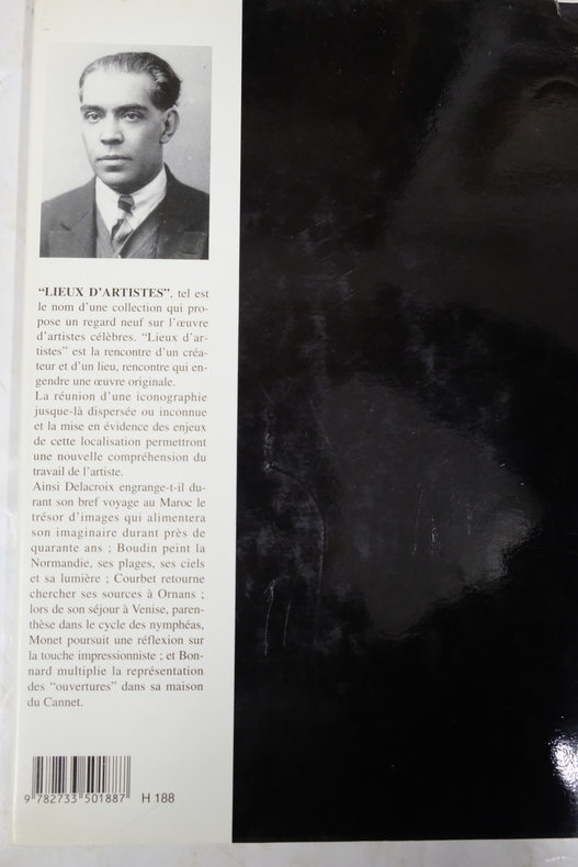 "Lieux d'artistes, tel est le nom d'une collection qui propose un regard neuf sur l'œuvre d'artistes célèbres. Lieux d'artistes est la rencontre d'un créateur et d'un lieu, rencontre qui engendre une œuvre originale. La réunion d'une iconographie jusque-là dispersée ou inconnue et la mise en évidence des enjeux de cette localisation permettront une nouvelle compréhension du travail de l'artiste. Ainsi Delacroix engrange-t-il durant son bref voyage au Maroc le trésor d'images qui alimentera son imaginaire durant près de quarante ans ; Boudin peint la Normandie, ses plages, ses ciels et sa lumière ; Courbet retourne chercher ses sources à Ornans ; lors de son séjour à Venise, parenthèse dans le cycle des nymphéas, Monet poursuit une réflexion sur la touche impressionniste ; et Bonnard multiplie la représentation des " ouvertures " dans sa maison du Cannet."