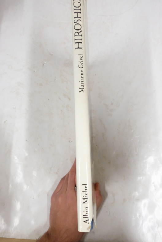 Berès Huguette Broché 1955 "In-4 (25,4 x 32,5 cm), broché, non paginé, catalogue de l'exposition ""Hiroshige"" du 7 juin au 15 juillet 1955), planches hors texte dont 1 en couleurs en regard de la page de titre ; dos et bords des plats brunis, par ailleurs intérieur frais, bon état. Livraison a domicile (La Poste) ou en Mondial Relay sur simple demande."