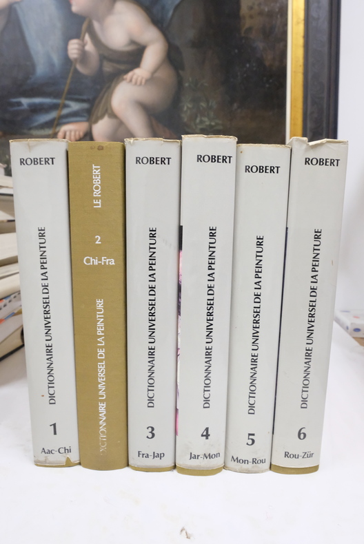 Reliés, 6 volumes de 500 pages chacun, format 28 x 21,6, parus en 1975 chez Le Robert, très bon état général, intérieurs frais, jaquette manquante sur le tome 2, jaquettes légèrement frottées pour la plupart.