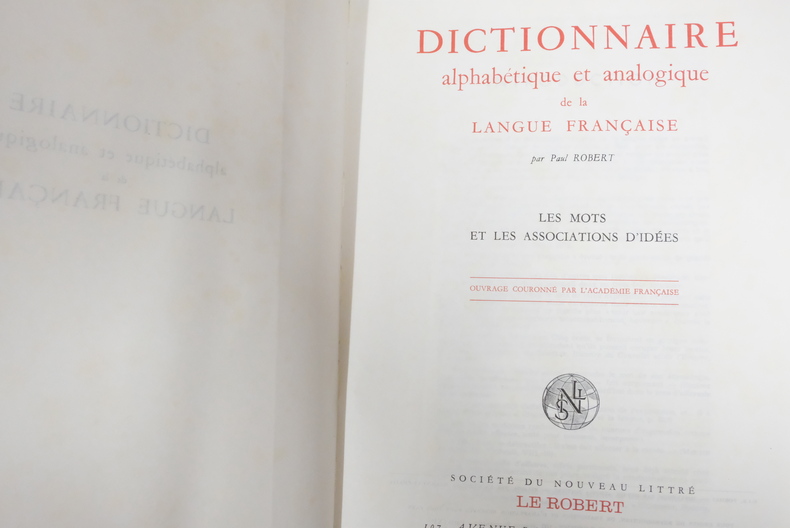7 ouvrages reliés du Robert de 1983, 6 sur les noms communs et un supplément, environ 1000 pages par volume, très bon état général, les intérieurs sont frais, les reliures sont en très bon état général également, très légères rousseurs quasi anodines sur les tranches.