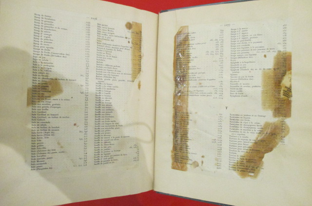Comprend : Prodrome de Gastronomie : gastronomie a travers les ages, les services de repas, les cuissons, les fonds de cuisson, glaces de viandes, les sauces, les potages, les champignons, le vin, les menus, mais aussi les Formules culinaires, potages soupes, les garnitures pour potages. Les hors-d'oeuvre, les oeufs. Les batraciens, crustacés et mollusques. Les poissons, la boucherie, les volailles, gibier Pates et légumes. Champignons, salades, fromages. Patisserie, compotes, boissons, sorbets, café, thé etc... 2 trés beaux volumes s'apparentant à la bible culinaire. UNE REFERENCE Couverture d'usage, avec de trés légers frottements, quelques rousseurs éparses en intérieur. Quelques pages de la table des matières sont recollées (voir photo 3)