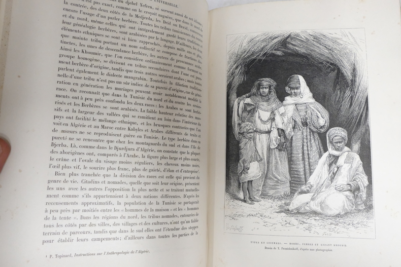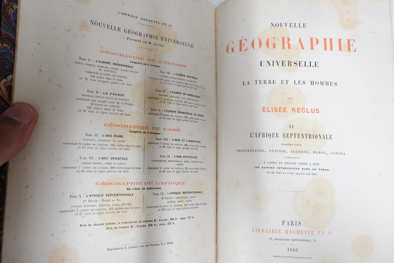 Relié dos demi-cuir rouge et doré, grand in-4, paru en 1886 chez Hachette & Cie, contenant 4 cartes en couleur tirées à part, 160 cartes intercalés dans le texte et 83 vues et types gravés sur bois, très bon état général, quelques légères rousseurs et marques d'épidermures ( certaines pages sont plus marquées que d'autres ), reliure en bon état. Nous possédons d'autres volumes de la même collection dont la première partie.