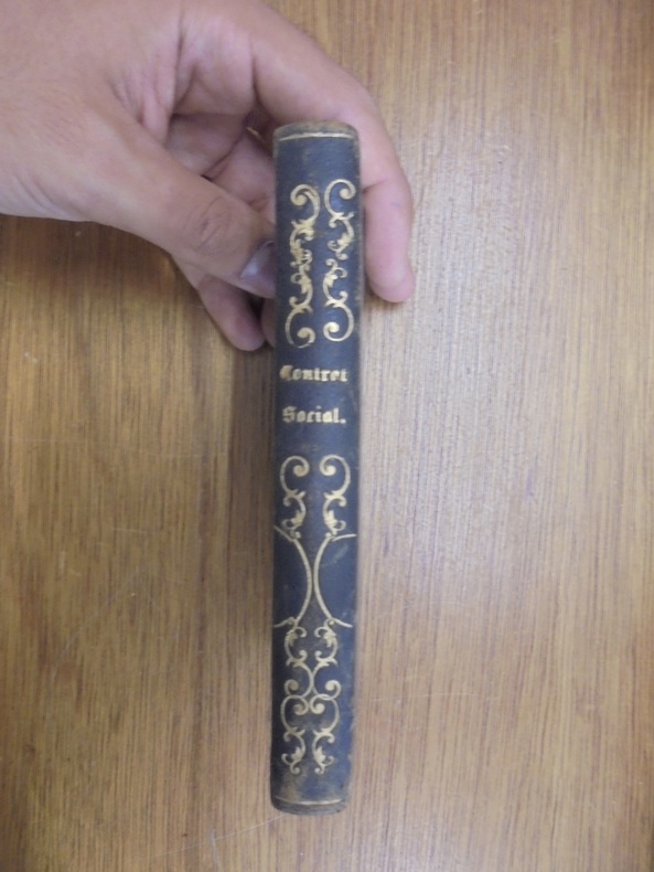 Edition originale au format in-12 ; parue simultanément avec celle au format in-8. ''Les 2 ff. préliminaires non chiffrées comprennent le faux-titre : Oeuvres diverses de J. J. Rousseau. Tome Troisième. dont le verso est blanc, et la page de titre, dont le verso est blanc. Mais y a-t'il eu un faux-titre pour les exemplaires de cette édition su Contrat social vendus séparément ? s'interroge Dufour. Vignette gravée sur cuivre au titre par Boily d'après Bolomey. ''J'ai mis en vente le Tome III des Oeuvres diverses de J. J. Rousseau, contenant Le Contrat social [...], in-12, 1762. J'en ai fait une édition gd in-8 qui se vent séparément''. (Marc Michel Rey cité in Dufour). Considéré comme un des inspirateurs des idées de la Révolution française, le présent ouvrage expose avec force et clarté l'idée que la seule forme de pouvoir politique légitime est le pouvoir trouvant son fondement dans la volonté du peuple (ou «volonté générale»). Du contrat social est un traité de philosophie politique présentant comment l’homme, passé de l’état de nature à l’état de société, peut instituer un ordre social au service de l’intérêt général. Le pacte social que propose Rousseau établit ainsi le renoncement de chacun à tous ses droits naturels afin d'obtenir la liberté civile que procure la société. Cette aliénation de chaque sujet de l’État est ce pacte qui offre à chacun l’égalité. La légitimité du pacte social - reposant sur le fait que l’homme n’aliène pas au sens propre son droit naturel - laisse ainsi entendre que le pacte social est la condition sine qua non de l’existence du droit naturel de l'homme. Et c’est sur ce pacte que Rousseau fait reposer la démocratie toute entière. Dufour, Recherches bibliographiques sur les Oeuvres imprimées de Jean-Jacques Rousseau, 134 - En françcais dans le texte, n°162 - Quérard VIII, La France littéraire p. 193 (ne faisant que mention de l'édition in-12) - Rahir, La Bibliothèque de l'amateur, p. 622 (''format pt in-8'') - Roussel, Dictionnaire de Jean-Jacques Rousseau, p.257 - Tchemerzine X, Bibliographie d'éditions originales et rares d'auteurs français, 43-a (pour l'édition in-8). Deux angles émoussés. Coupes élimées. Tâches affectant les plats. Coiffes arasées. Celle de queue présente un léger travail de vers. Dos présentant un éclat légèrement altéré ainsi que quelques frottements. Quelques rousseurs et tâches dans le corps d'ouvrage (davantage marquées aux feuillets liminaires). Infime travail de vers affectant la marge supérieure des fonds de cahiers ; quoique davantage prononcé aux derniers feuillets (sans toutefois ne jamais atteindre le texte). Exemplaire néanmoins séduisant.