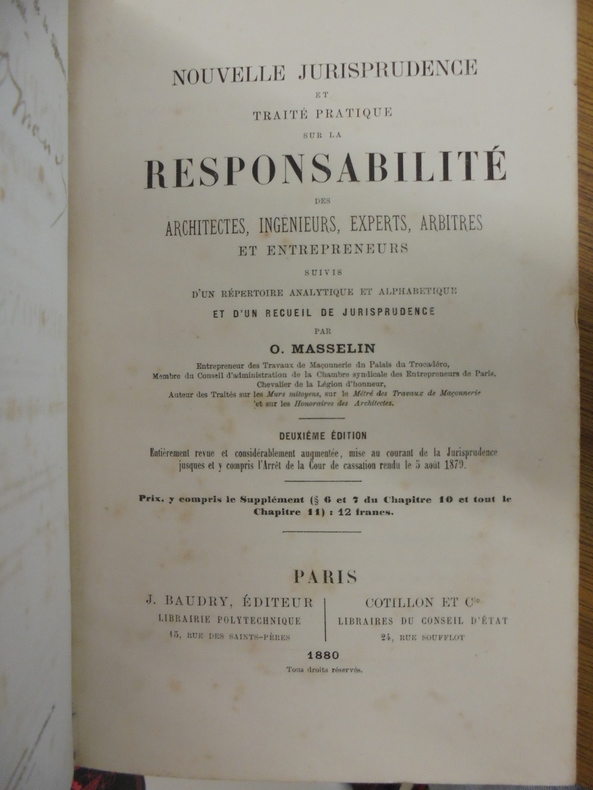 P., Baudry, Cotillon, 1880, In-8° relié demi cuir marron d'époque, 383 pages. 2e édition entièrement revue et considérablement augmentée mise au courant de la jurisprudence.
