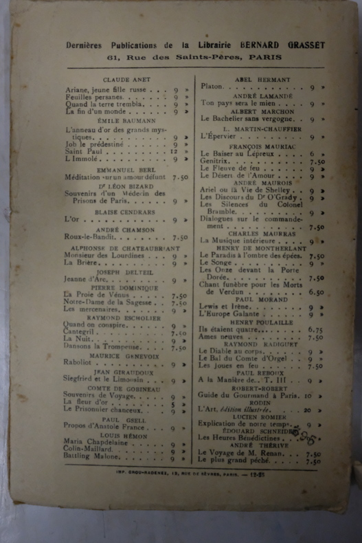 Broché, 252 pages, paru en 1926 chez Bernard Grasset, livre en bon état général, quelques rousseurs et frottements ( notamment sur la partie basse du dos ), intérieur frais.