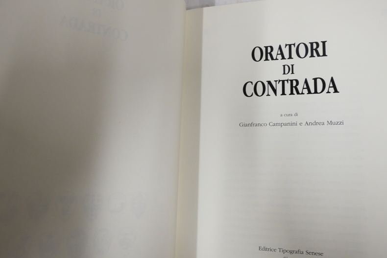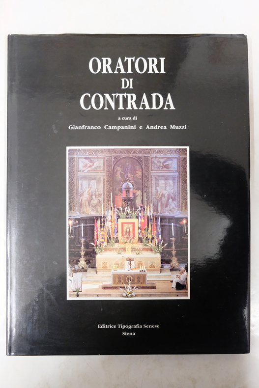 Un volume di 149 pagine, tela editoriale con sovracoperta illustrata. Dimensioni: 25x33 cm. Ottime condizioni. Dedica alla pagina bianca. 17 fotografie a colori a piena pagina nel testo. Elegante volume con copertina in tela e sovraccoperta con le immagini degli oratori delle Contrade di Siena documentate con precisione dalle immagini di Paolo Rappuoli corredate da alcune note in cui, per ciascuna Contrada, sono riassunte sulle vicende costitutive relative all Oratorio, sulle diverse Chiese eventualmente utilizzate prima dell attuale e sulle opere d arte custodite nell Oratorio oggi officiato.