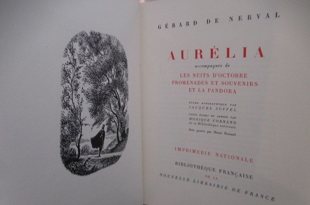 Imprimerie Nationale, Nouvelle Librairie de France, Bibliothèque Française, à partir de 1958. Complet. 7 volumes in-8, relié, demi-dos basane verte bronze à coins, 5 nerfs, titrage et tomaison dorés, signet, tranches de têtes dorées. Les filles du feu : 360pp. ; Aurélia : 359pp. ; Les illuminés : 389pp. ; Lorely : 300pp. ; Voyage en Orient, 3 volumes : 946pp.