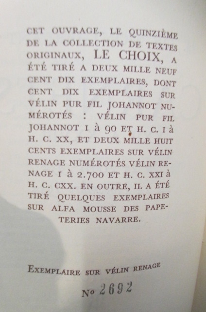 Edition originale, UN DES 110 exemplaires de tête numérotés sur vélin pur fil Johannot (n° 40). Agréable exemplaire. * Voir photographies / See pictures. * Membre du SLAM et de la LILA / ILAB Member. La librairie est ouverte du lundi au vendredi de 14h à 19h. Merci de nous prévenir avant de passer,certains de nos livres étant entreposés dans une réserve.