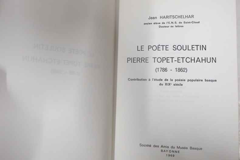 Broché, 580 pages, paru en 1969 chez Société des Amis du Musée Basque, livre en très bon état général.