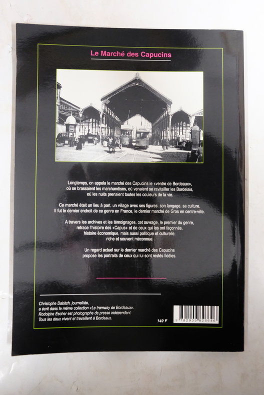 Sommaire : la ville du commerce - les religieux à capuce - les nettoyeurs d'enceinte - le ventre de l'époque - porte neuve et le bétail - au bonheur des tueries - les vrais débuts des Capucins - Baltard un génie malgré lui - lexique du bordeluche,mesté verdié, ulysse despaux - la rue Gintrac un cas à part - les tentacules homicides - Chaban le fils et le père etc. Classification Dewey : 908.447-Régionalisme : Aquitaine