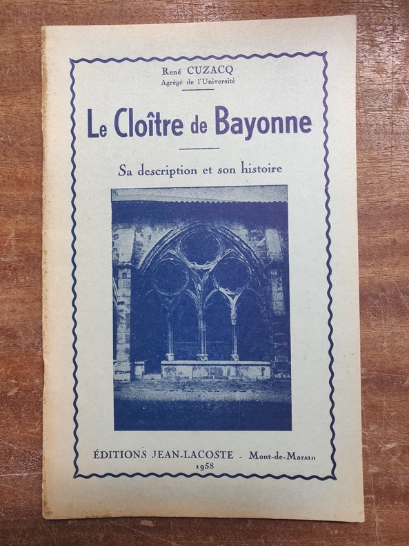 Editions Jean-Lacoste -Mont de Marsan, 1958, P. 46. Rousseur sur la couverture, page intérieur jaunies mais reste en bon état. Contient des photos en noir et blanc. Rare fascicule décrivant le cloitre de Bayonne.