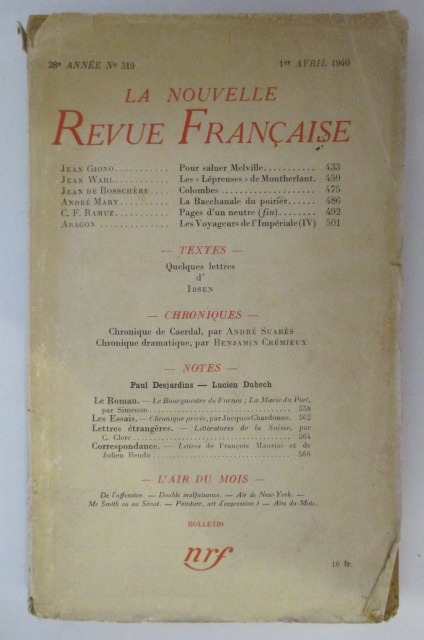 1er Avril 1940 / Paginé de 434 à 576. Broché.