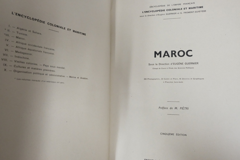 Relié, 456 pages, paru en 1943 chez Encyclopédie coloniale et maritime, livre en très bon état général, légers frottements aux coins du dos.