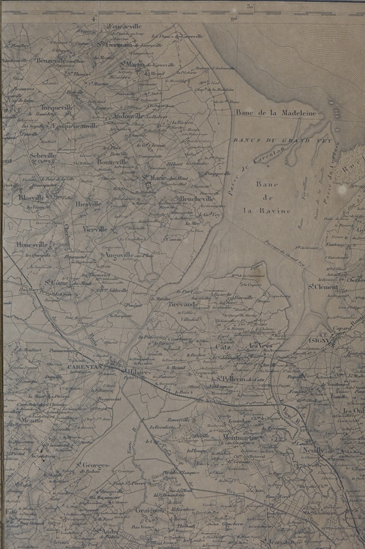 Feuille n°125/22 de la carte de Cassini, couvrant les côtes du Cotentin dans le département de la Manche, entre Fréval et Fermanville au nord, et Baubigny au sud. Elle s'étend au sud-est jusqu'à Urville et un hameau appelé Condargent. Les villes principales de Cherbourg et Valognes sont signalées à l'aquarelle rouge. Les routes et chemins sont aquarellés en jaune. L'échelle est en toises. La carte de Cassini est la première carte générale et particulière du royaume de France. En 1747, Louis XV décide de confier à César-François Cassini l'élaboration d'une carte de France, "particulière" - c'est-à-dire détaillée - et "générale", parce qu'elle doit couvrir tout le royaume. Les levés furent effectués entre 1756 et 1789 et les 182 feuilles composant la carte furent publiées entre 1756 et 1815. Trois générations de Cassini se succédèrent pour achever ce travail, principalement César-François Cassini de Thury dit Cassini III (mort en 1787) et son fils Jean-Dominique Cassini de Thury dit Cassini IV. Cette carte constituait pour l'époque une véritable innovation et une avancée technique décisive. Elle est la première carte à s'appuyer sur une triangulation géodésique dont l'établissement prit plus de cinquante ans. La carte de Cassini ne sera pas remplacée avant 1866, avec la carte d'État-Major à l'usage des militaires. Très bel et rare exemplaire finement aquarellé à l'époque.