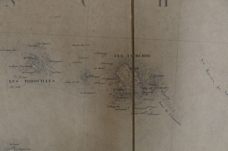 [Paris, 1756-1789]. En 12 sections montées sur toile et pliées, formant une carte de 587 x 528 mm ; étiquette au dos de l'éditeur Lattré portant le titre "Cherbourg" et le numéro en manuscrit.