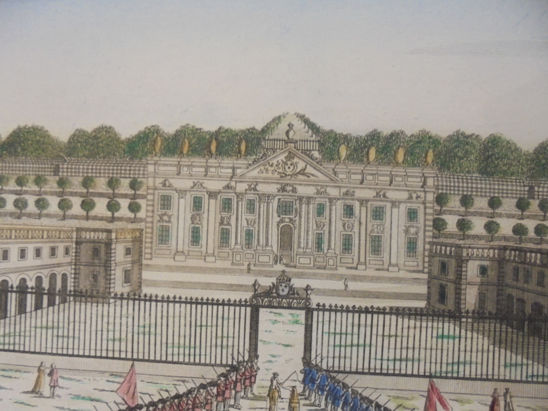 vue d'optique 32,5 cm /47 cm (cuvette42/29,3 cm) restaurée (nettoyée par un excellent restaurateur . gravure en TBE ,aquarellée d'époque ,superbe ! nos envois sont soignés en France et dans le monde.
