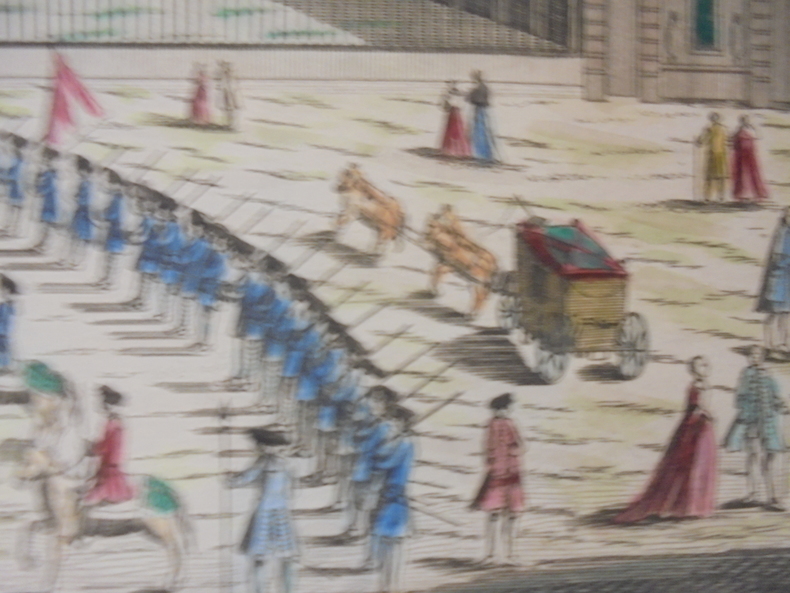 Fait par Aveline. Belle gravure en couleurs, du XVIIIème siècle ; avec rehauts. 510x335mm et 550x370mm avec marges Gravure renmargée. Une mouillure dans la partie gauche, pratiquement invisible, visible au verso. Très décorative, dans l’état.