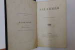 Titre : Salammbô. Œuvres de Gustave Flaubert – Tome premier et Tome second (complet en 2 volumes) Auteur : Gustave Flaubert Éditeur : Alphonse Lemerre, Éditeur Lieu : Paris, 23-33, Passage Choiseul Date : s. d. [vers 1890–1900] Format : 2 volumes in‑12 (env. 18 x 12 cm) Reliure : Demi‑basane brune d’époque, dos à faux-nerfs ornés de filets et fleurons dorés, titres « G. Flaubert — Salammbô I / II » ; plats marbrés. Signet en tissu vert conservé dans le tome II. État du livre : Bon état général. Frottements et petites épidermures aux dos, coins et coiffes émoussés, dos légèrement passés ; plats marbrés avec marques d’usage. Intérieurs propres, papier uniformément jauni avec rares rousseurs éparses, sans annotations ni manques. Reliures solides. Ensemble homogène et complet des deux tomes. Contenu / remarque : Belle édition Lemerre des Œuvres de Flaubert, non illustrée, présentant le célèbre roman historique situé à Carthage après la Première Guerre punique. Page de titre en rouge et noir avec la marque de l’éditeur. Langue : Français