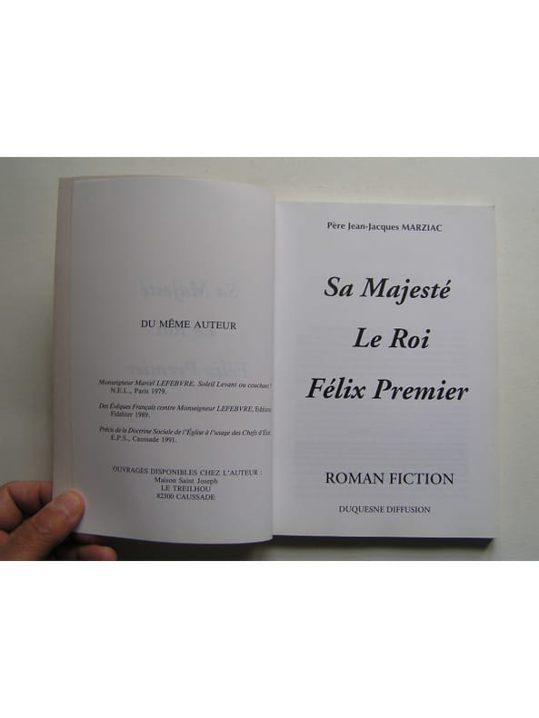 État : Bon état - Année : 1993 - Format : in 8° - Pages : 225pp - Editeur : Duquesne Diffusion - Lieu d'édition : Paris - Type : Broché - Manque : La première garde est découpée - Commander rapidement : https://www.bons-livres.fr/livre/pere-jean-jacques-marziac/645-sa-majeste-le-roi-felix-premier?lrb