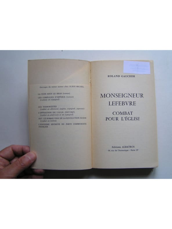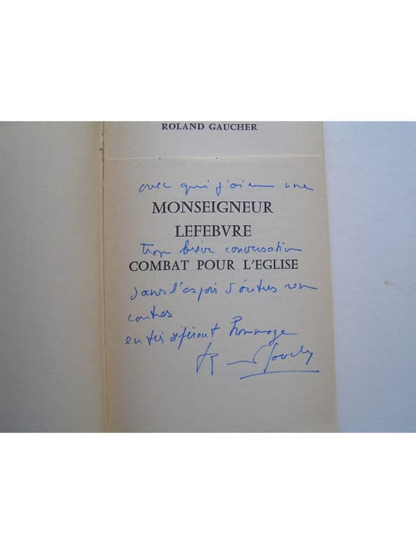 État : Bon état - Année : 1976 - Format : in 8° - Pages : 261pp - Editeur : Albatros - Lieu d'édition : Paris - Type : Broché-cousu - Divers : Le nom du dédicataire a été soit coupé soit biffé (proprement voir photos). Trois plis de lecture au dos (mais ouvrage solide: cahiers cousus). Intérieur bien propre (une page cornée). - Commander rapidement : https://www.bons-livres.fr/livre/roland-gaucher/10175-monseigneur-lefebvre-combat-pour-l-eglise?lrb