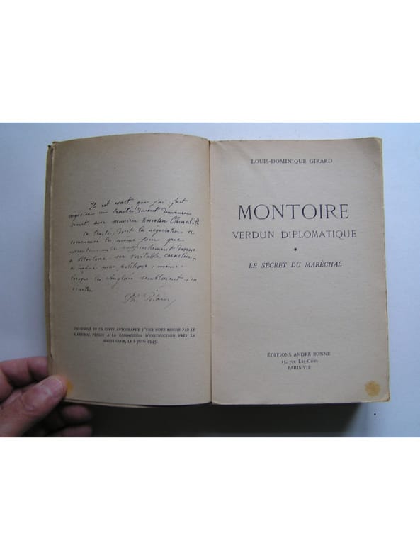 Montoire, Verdun diplomatique. Le secret du Maréchal. (Paris: Editions André Bonne, 1948). [M.C.: France, Histoire, 2ème Guerre Mondiale, diplomatie, Pétain]