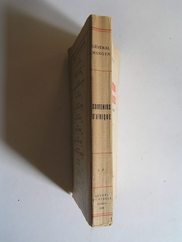 Avec cinq cartes hors-texte. Livre premier: Mission Marchand (1895 - 1899). Livre deuxième: Tournée d'inspection au Congo (1908). Livre troisième: Maroc (1912 - 1913). Le général Mangin fut, avant la grande Guerre, un officier colonial de premier ordre qui fit campagnes en Afrique Noire, au Maroc mais également au Tonkin. Dans son livre, publié en 1910, il préconise un emploi massif des troupes coloniales, et spécialement des troupes africaines, sur le téâtre européen si la guerre devait intervenir.