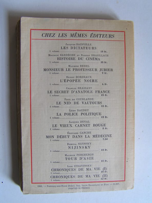 P., Denoël et Steele, 1936, in 8° broché, 265 pages ; petite tache brune sur la couverture.