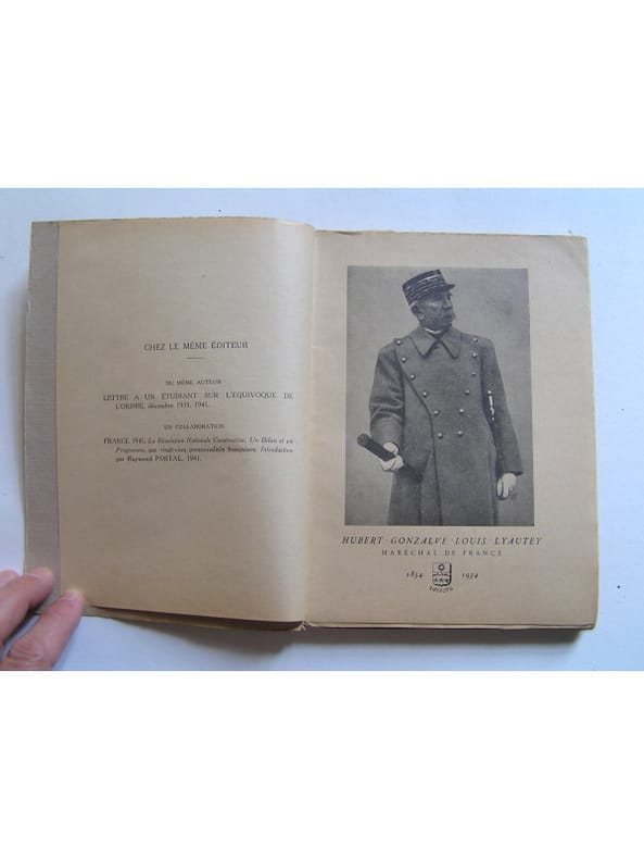 1941 broché in-octavo, dos marron-clair, légères rousseurs sur la couverture, orné de 5 photographies en hors-texte en noir dont un portrait en pied de Lyautey + 3 fac-similé de lettre en hors-texte en noir, 265 pages, 1941 Paris Editions Alsatia Editeurs,
