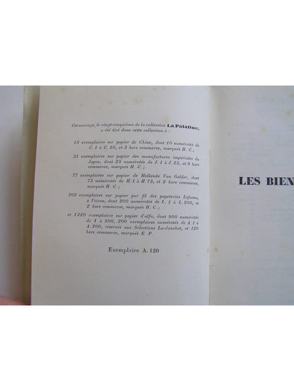Edition originale de 1932. Cet ouvrage, le vingt-cinquième de la collection La Palatine. Un des 1220 exemplaires sur papier d'alfa réservés aux Séléctions Lardanchet numérotés A.1 à A.200 (n° A.120)