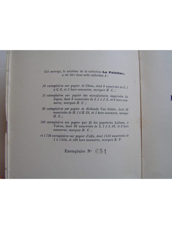 Bordure de couverture usée petite déchirures en bas du dos. Intérieur très bon exemplaire numéroté sur alfa