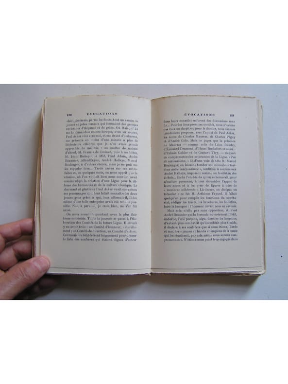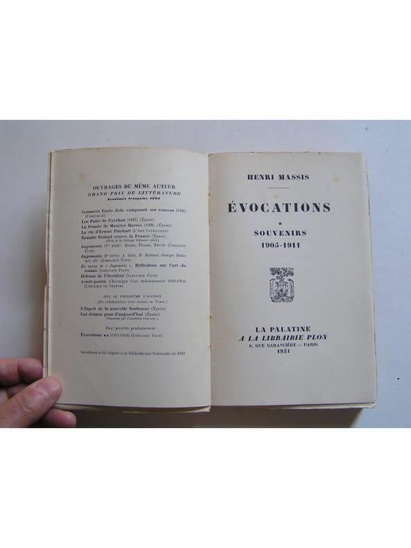 Edition originale de 1931, le seizième de la collection La Palatine. Un des 1750 exemplaires sur papier d'alfa numérotés (n°651). Dos insolé et bruni avec petit manque en coiffe de tête. Franges de couv très légèrement usagées. Rousseurs sur la tranche de tête. Qqes très rares pointes de rousseurs en marge des toutes premières et dernières pages. Ouvrage solide et intérieur bien propre. Les premières années de la vie littéraire du grand philosophe chrétien Henri Massis. Son entrée dans le monde de ˮla république des lettresˮ, ses premières rencontres, avec des personnalités aussi différentes que Barrès, bergson, Anatole France et Maurras. Une époque où la pensée n'avait pas de frontière. Un livre qui nous plonge, avec bonheur, dans les sources du ˮnationalisme à la françaiseˮ.