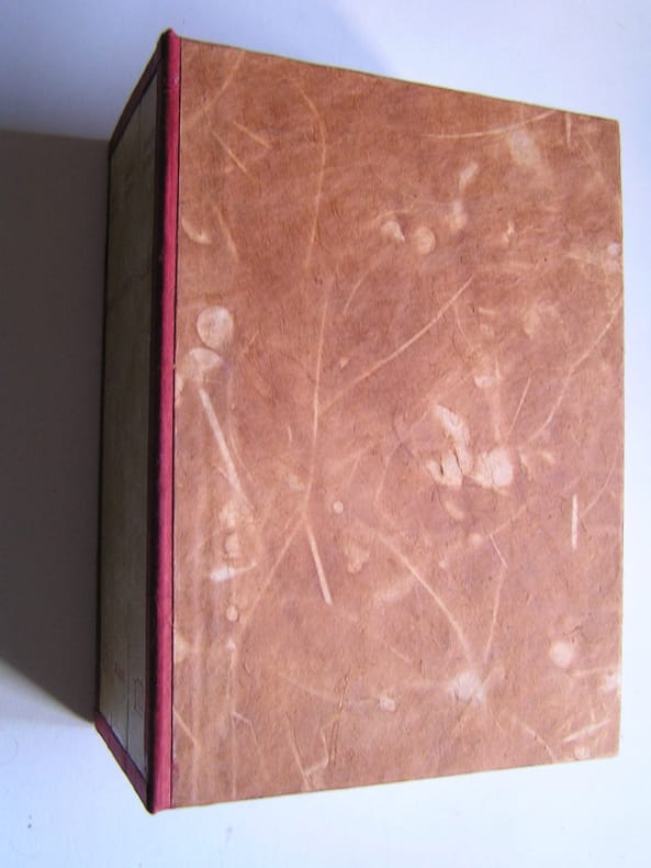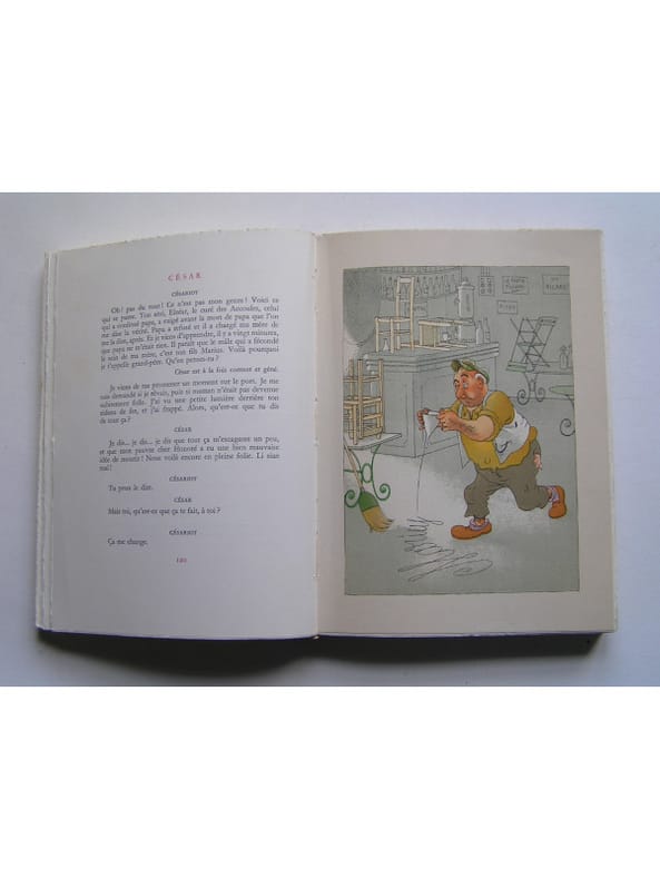 Illustrationq de Dubout. 66 compositions en couleurs hors texte, 75 dessins en noir dans le texte. Edition de 1949 des trois pièces brochées sous couv rempliées et sous double emboîtage (emboîtage refait autour de celui d'origine) imprimées sur Grand Velin Blanc et tirées à 2000 exemplaires numérotés de 3001 à 5000 (N°4162) en bon état (les dos sont légèrement arrondis avec de légers plis de lecture. Les coiffes et les coins sont légèrement frottés. Quelques pâles rousseurs sur les tranches de tête. Les intérieurs sont bien propres.).