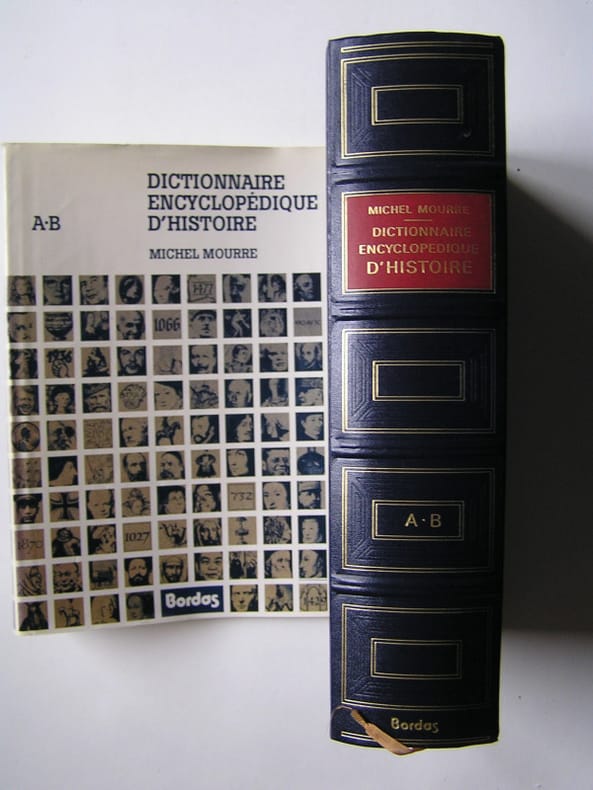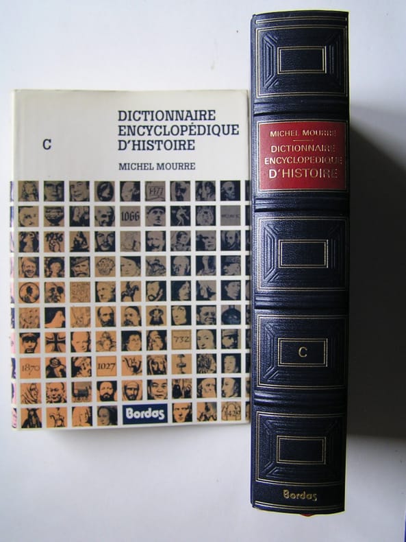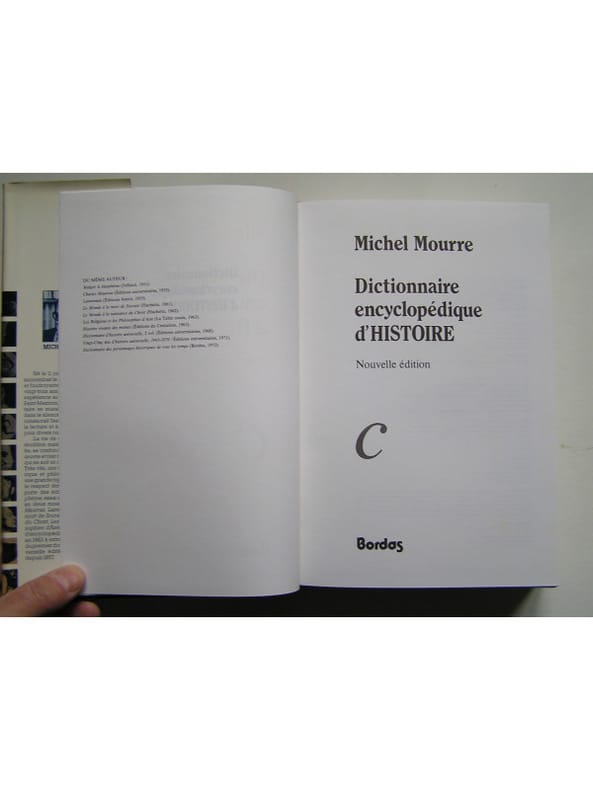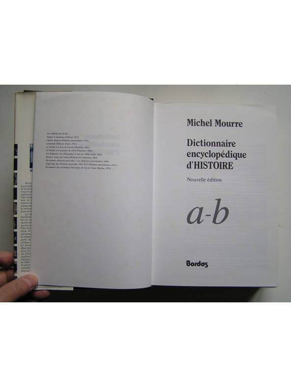 État : Bon état - Année : 1989 et 1991 - Format : in 4° - Tome(s) : 8 volumes - Pages : 4892pp - Editeur : Bordas - Lieu d'édition : Paris - Type : Cartonnage plein skyvertex noir avec jaquette - Divers : Franges des jaquettes un peu élimées. Pales pointes de rousseurs sur les tranches de têtes (7 vol sur 8). Tranches légèrement salie. Premier plat du cartonnage du tome 5 légèrement rayé. Intérieurs bien propres. - Commander rapidement : https://www.bons-livres.fr/livre/michel-mourre/10244-dictionnaire-encyclopedique-d-histoire-complet-des-8-volumes?lrb