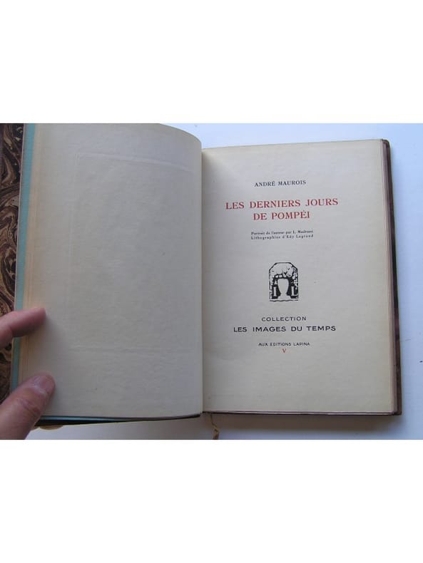 État : Bon état - Année : 1928 - Format : in 8° - Pages : 103pp - Editeur : Lapina - Lieu d'édition : Paris - Type : Reliure demi-chagrin - Divers : Coins et mors très légèrement frottés. - Collection : Les images du temps - Commander rapidement : https://www.bons-livres.fr/livre/andre-maurois/10246-les-derniers-jours-de-pompei?lrb