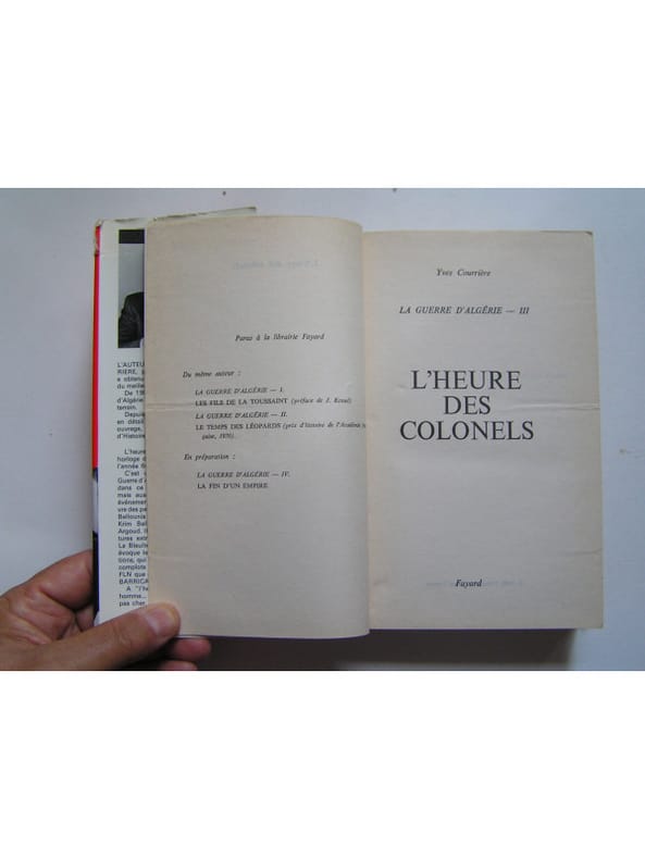 État : Bon état - Année : 1968, 1971, 1970 et 1971 - Format : in 8° - Pages : 446, 612, 630 et 675pp - Editeur : Fayard - Lieu d'édition : Paris - Type : Cartonnage toile éditeur, jaquette illustrée - Divers : Franges des jaquettes un peu élimées. Toiles des cartonnage un peu frottées et très légèrement salies. Tranches légèrement salies. Un tampon d'ancien propriétaire en page de titre du tome 1. Intérieurs bien propres. - Commander rapidement : https://www.bons-livres.fr/livre/yves-courriere/10252-la-guerre-d-algerie-complet-des-4-tomes?lrb