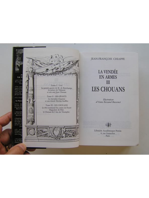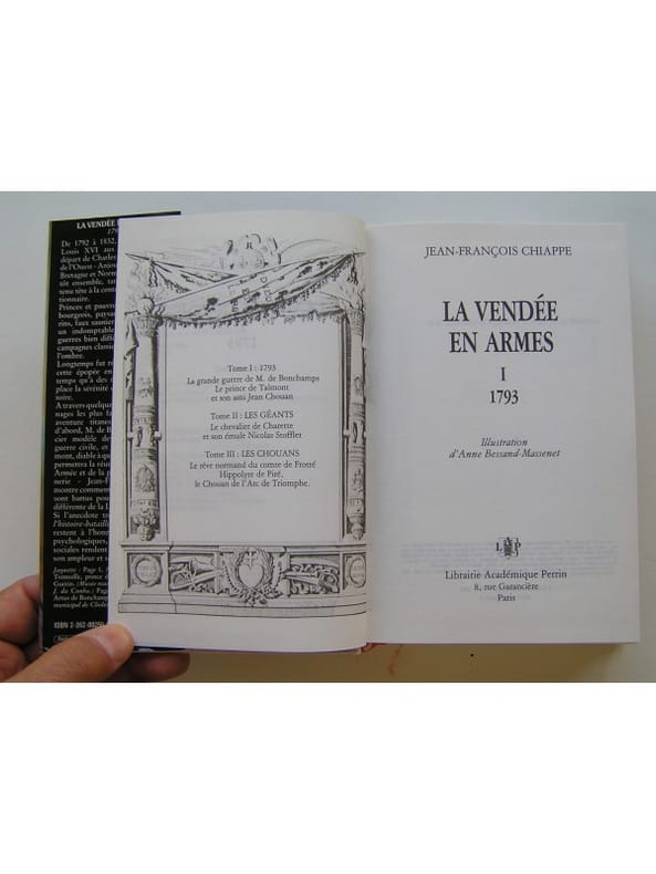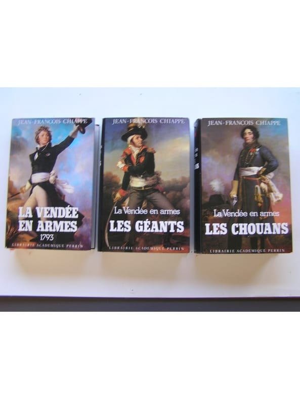 État : Très bon état - Année : 1982 - Format : in 8° - Tome(s) : 3 tomes - Pages : 536, 471 et 689pp - Editeur : Librairie Académique Perrin - Lieu d'édition : Paris - Type : Cartonnage toile éditeur, jaquette illustrée - Divers : Jaquettes un peu frottées aux franges. Qqes très (très) légers et rares "tassements" aux franges des cartonnages. Intérieurs bien propres. - Collection : Présence de l'Histoire - Commander rapidement : https://www.bons-livres.fr/livre/jean-francois-chiappe/10253-la-vendee-en-armes-complet-des-trois-volumes?lrb