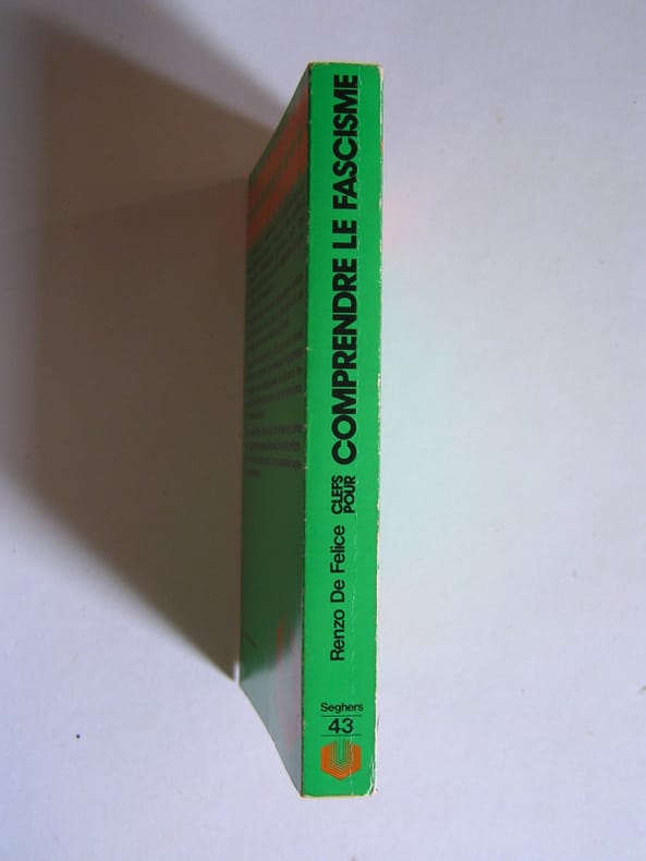 État : Bon état - Année : 1975 - Format : in 12° - Pages : 299pp - Editeur : Seghers - Lieu d'édition : Paris - Type : Broché - Divers : Couv un peu frottée avec de légers plis de lecture sur les plats. Ouvrage solide et intérieur bien propre (Qqes annotations discrètes au stylo en marge de la dernière page). - Collection : Collection "Clefs". - Commander rapidement : https://www.bons-livres.fr/livre/renzo-de-felice/10275-clefs-pour-comprendre-de-fascisme?lrb