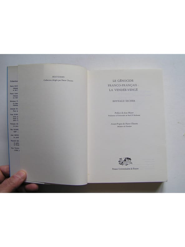 État : Bon état - Année : 1986 - Format : in 8° - Pages : 338pp - Editeur : P.U.F. - Lieu d'édition : Paris - Type : Broché-cousu - Divers : Pli de lecture au dos (mais bien solide: cahiers cousus). Coiffes et coins très légèrement frottés. Intérieur bien propre. - Collection : Histoires - Commander rapidement : https://www.bons-livres.fr/livre/renald-secher/10283-le-genocide-franco-francais-la-vendee-venge?lrb