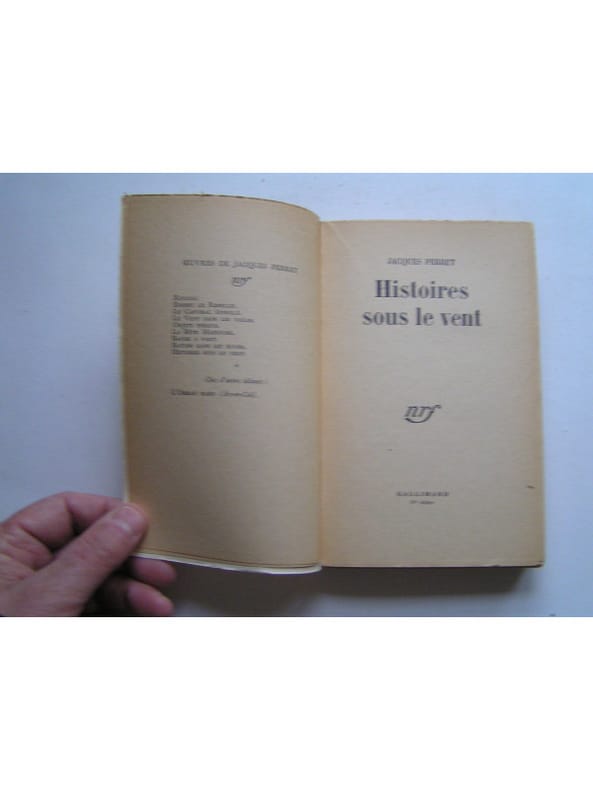 État : Très bon état - Année : 1961 - Format : in 12° - Pages : 307pp - Editeur : Gallimard NRF - Lieu d'édition : Paris - Type : Broché-cousu - Divers : Dos un peu bruni avec un léger pli de lecture. - Commander rapidement : https://www.bons-livres.fr/livre/jacques-perret/9958-histoires-sous-le-vent?lrb