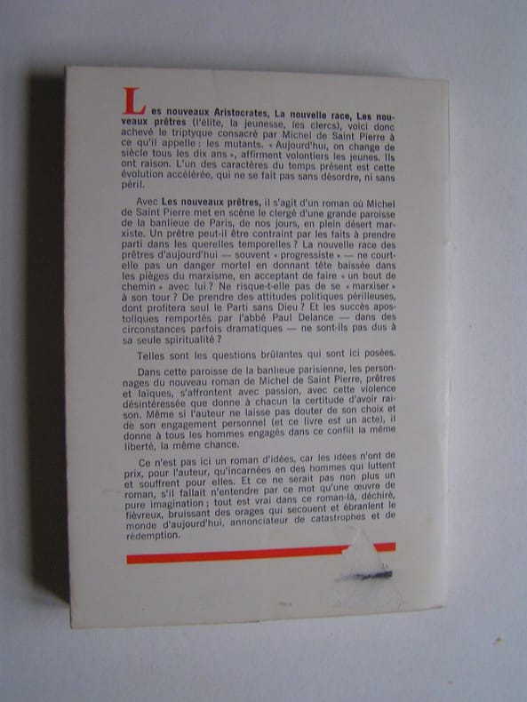 État : Bon état - Année : 1965 - Format : in 8° - Pages : 312pp - Editeur : La Table Ronde - Lieu d'édition : Paris - Type : Broché - Divers : Juste un petit accident en bas du dernier plat de couv (voir photo). - Commander rapidement : https://www.bons-livres.fr/livre/michel-de-saint-pierre/10323-les-nouveaux-pretres?lrb