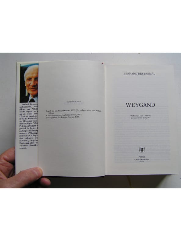 État : Très bon état - Année : 1989 - Format : in 8° - Pages : 844pp - Editeur : Perrin - Lieu d'édition : Paris - Type : Cartonnage toile éditeur, jaquette illustrée - Commander rapidement : https://www.bons-livres.fr/livre/bernard-destremau/10332-weygand?lrb