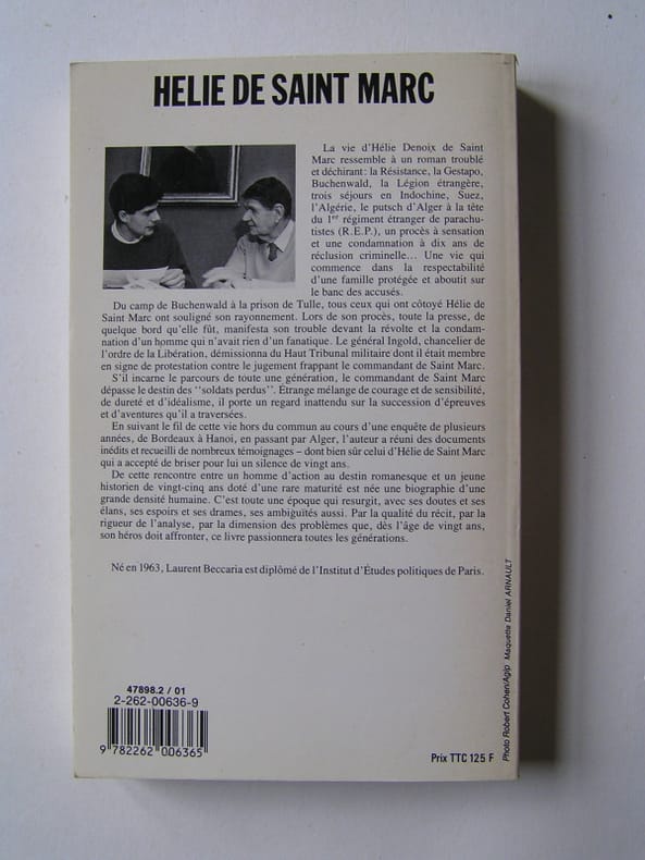 ˮMonsieur le président, depuis mon âge d'homme, j'ai vécu pas mal d'épreuve...ˮ. Le livre qui a mis en lumière la vie exceptionnelle d'un homme d'exception et, avec lui, ses compagnons de combats, connus et inconnus, ainsi que les évènements auxquels ils ont participé (les abandons de l'Indochine et de l'Algérie). Après avoir remporté un grand succès, mérité, de son vivant, il ne faufrait pas que la vie exemplaire du commandant Hélie Denoix de Saint Marc tombe dans l'oubli avec son décès. Il demeure un exemple pour la jeunesse de France dans les moments difficiles qui risquent d'être les siens.