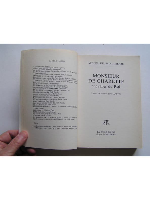 Préface de Maurice de Charette. Michel de Saint-Pierre replace François-Athanase de Charette au coeur du drame épique où il tient tête aux armées de la République menées par Kléber, marceau, Hoche, pendant plus de trois années. A travers l'épopée et les récits de batailles, l'auteur nous montre un héros, chef de guerre, où le panache, la passion et l'amour sont intimement liés. La guerre de Vendée a laissé 350 000 morts, hommes, femmes, enfants, sur une population de 500 000 habitants. Il y a près de deux siècle, au nom de sa foi et de son roi, Charette a inventé la guerre subversive moderne - la guerre du paysans-soldat. Il fut parmi les derniers à tenir le terrain avec honneur et fidélité. Michel de Saint-Pierre nous montre tout cela mais il y ajoute une couleur et une dimension: celles d'une aventure ˮpicaresqueˮ dans l'épopée.