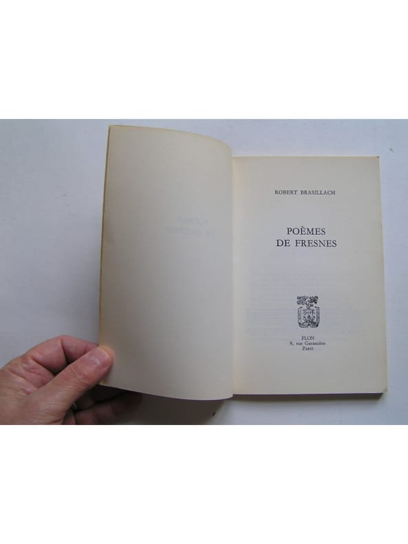 En 1944, Robert Brasillach, arrêté et emprisonné à Fresnes, est condamné à mort pour ses écrits dans Je suis partout. Ne ce faisant aucune illusion sur le résultat des recours déposés par son avocat ou de la demande en grâce signée par les plus grands écrivains français et adressée au général De Gaulle, il attendait son exécution dans sa cellule. Les Poèmes de Fresnes ont été écrits dans cette prison alors que l'auteur n'avait ni stylo ni papier. Il avait réussi à se procurer une plume qu'il cachait dans une pipe et du papier qu il arrachait d'un carnet. C'est par son avocat que ces poèmes sont sortis de Fresnes. Petit manque angulaire au premier plat. Du reste, belle condition.