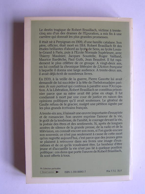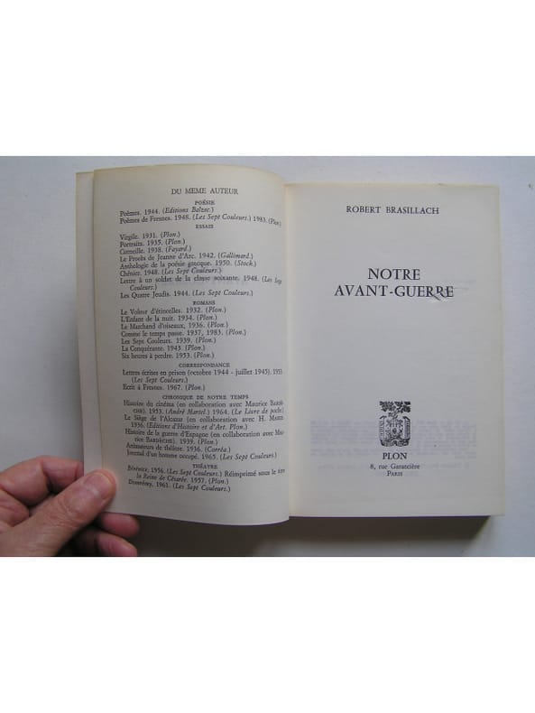 État : Très bon état - Année : 1983 - Format : in 8° - Pages : 364pp - Editeur : Plon - Lieu d'édition : Paris - Type : Broché-cousu - Divers : Juste un petit accident au centre de la page de titre (voir photo). - Commander rapidement : https://www.bons-livres.fr/livre/robert-brasillach/10340-notre-avant-guerre?lrb